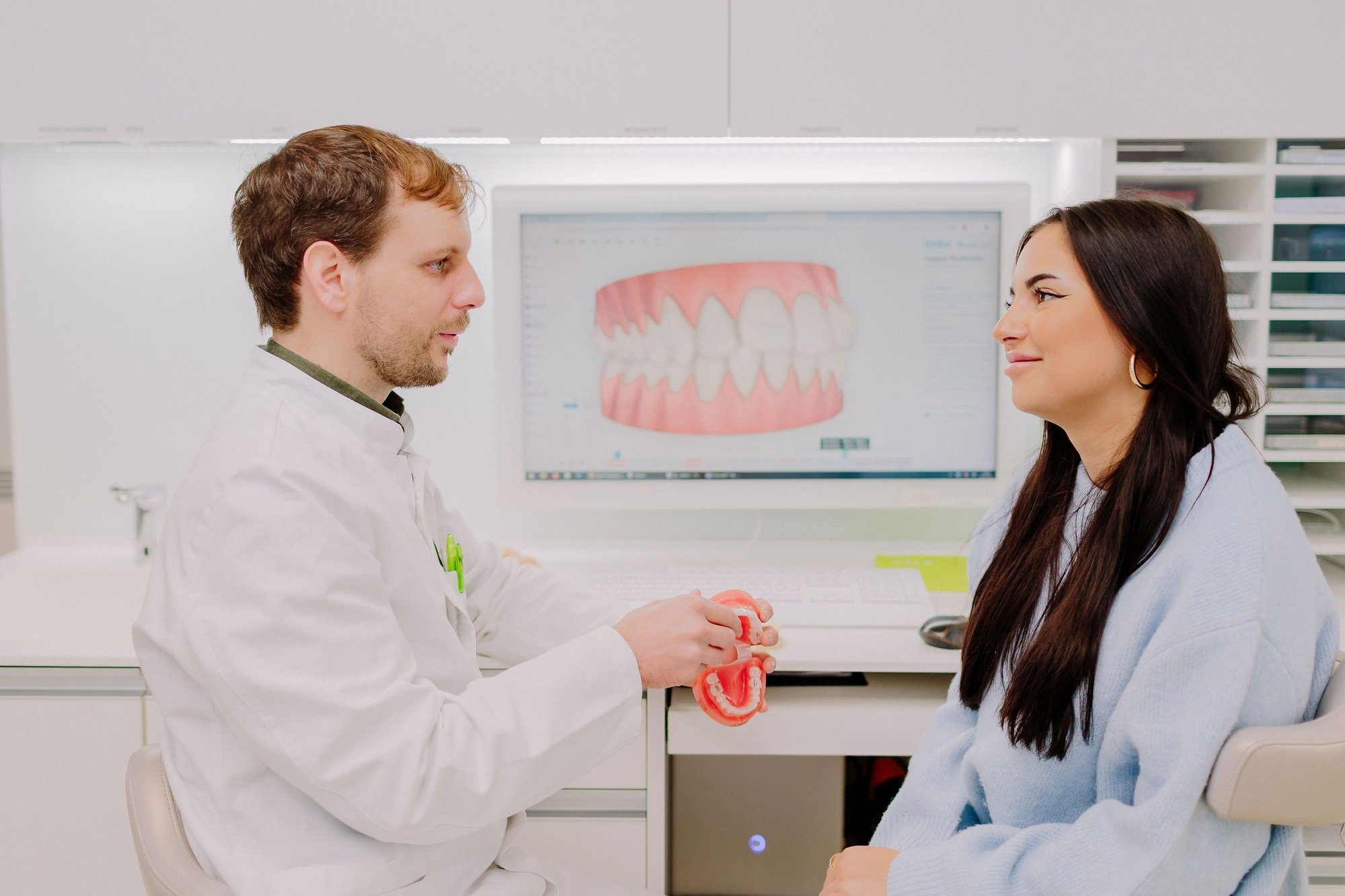 Zusätzlich zu der oben beschriebenen, gänzlich unsichtbaren Methode gibt es eine weitere Option: Zahnfarbene Brackets, die außen an den Zähnen angebracht werden. Sie funktionieren ähnlich wie die klassischen silbernen Zahnspangen, sind aber viel weniger sichtbar. Aus diesem...
